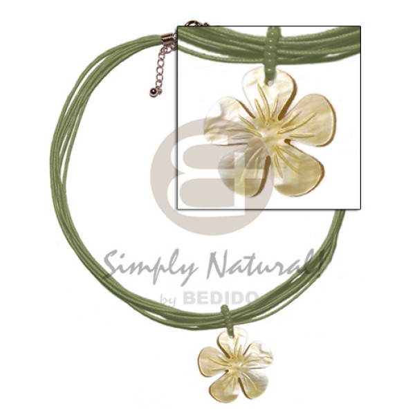 2 layer knotted lilac cord buri & coconut pukalet accent and 40mm handpainted round capiz pendant..