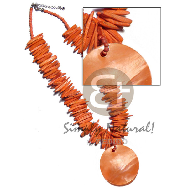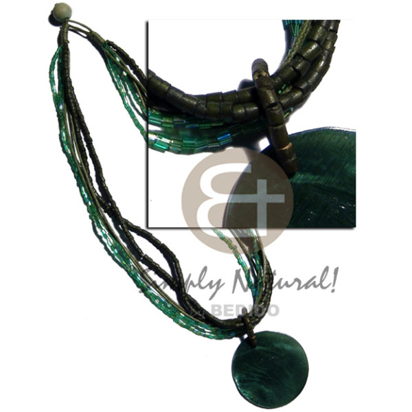 4 layers glass beads shell chips & 50mm round handpainted capiz shell pendant..