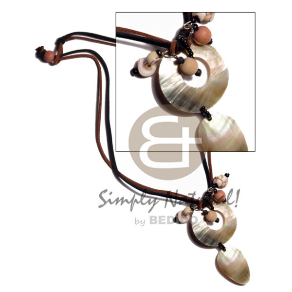 dangling 35mm blacklip ring 30mmx20mm teardrop blacklip in double leather thong..