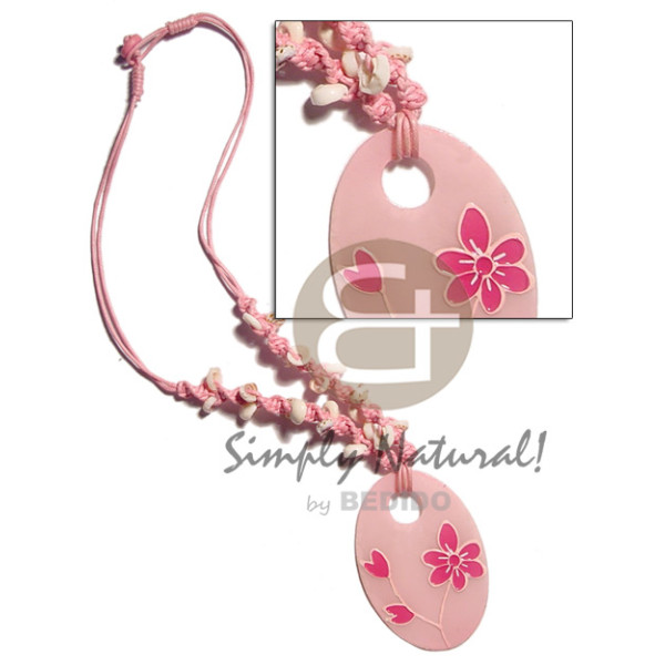 2 layers twisted wax cord puka shells accent & 45mm handpainted oval capiz..