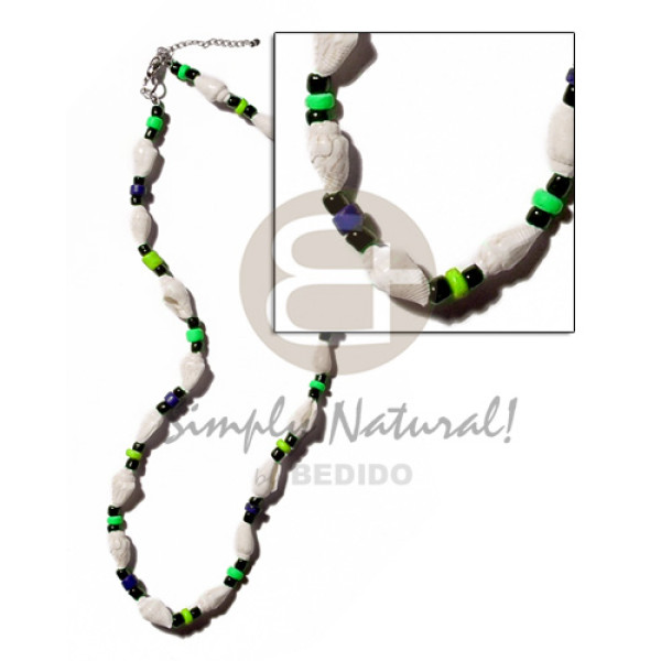 neon green 2-3mm coconut heishi wire choker buri & troca beads accent 45mm flower hammershell gro..