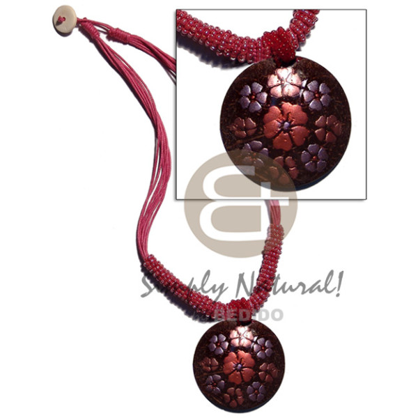 handpainted and colored round 35mm kabibe shell pendant embellished elevated /embossed metallic pai..
