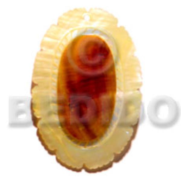 50mmx38mm oval pendant /elegant hat lady delicately etched in shells - brownlip, blacklip and paua ..