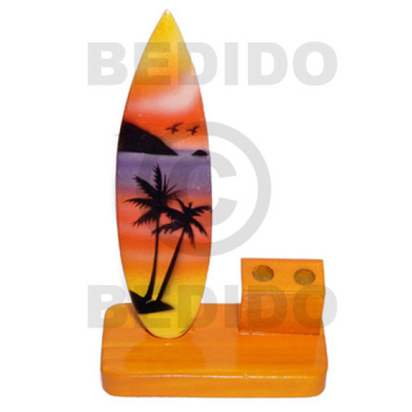 4inx3inx1.5in handpainted wood surfboard single penholder / small..
