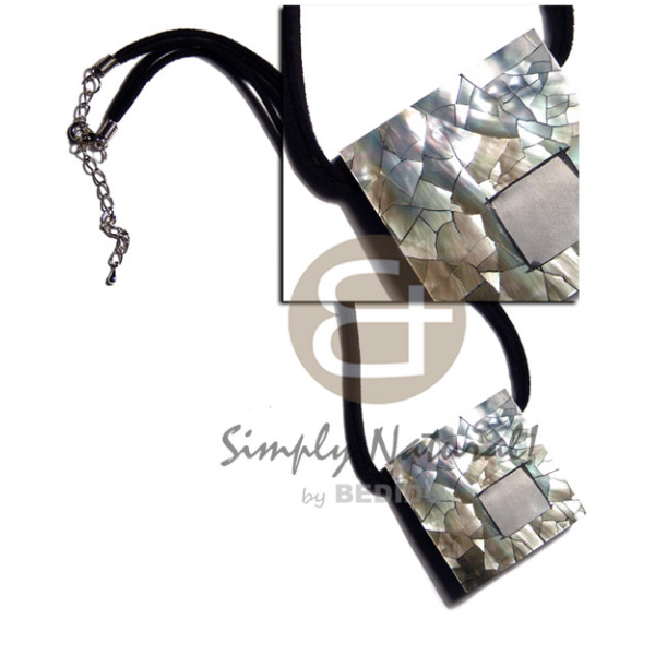 45mmx45mm blacklip shell cracking inlaid metal in double leather thong..