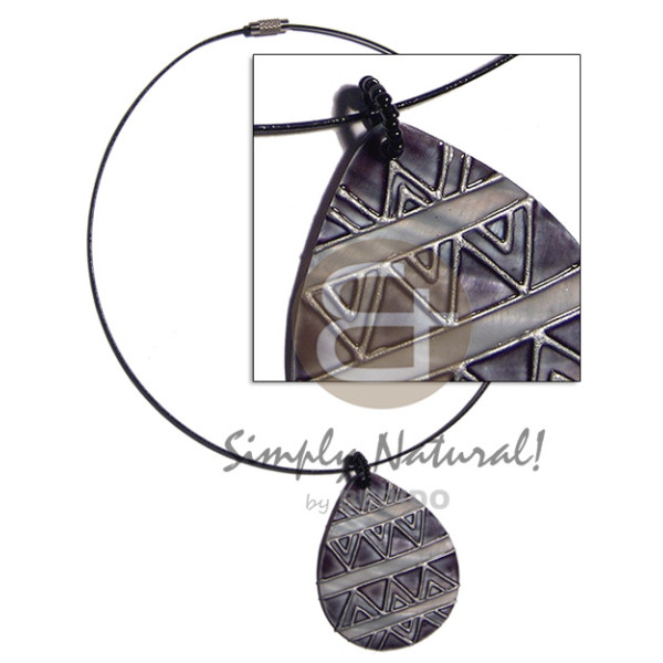coated black cable wire neckline handpainted and colored teardrop 60mmx48mm kabibe shell pendant e..