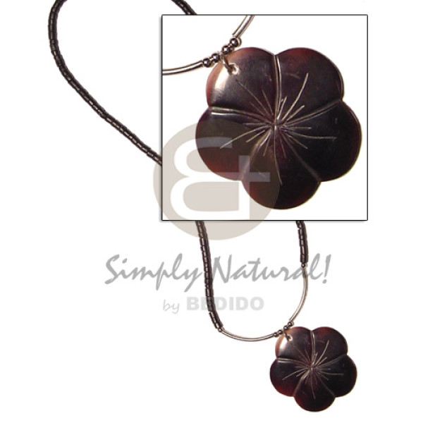 2-3 black coconut heishi metal tube and black tab gumamela pendant..