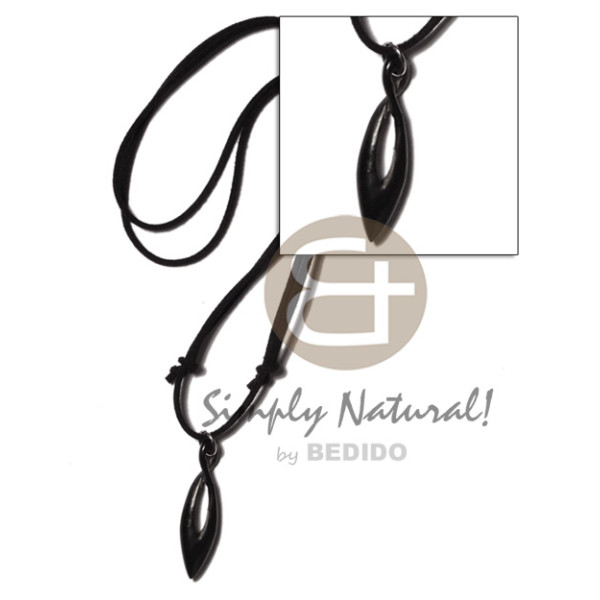 40mm celtic eye carabao black horn pendant on adjustable leather thong..