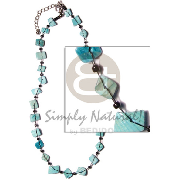 2 rows wax cord choker kabibe shells in ocean blue tones metallic silver edging - 60mmx45mm/50mmx3..