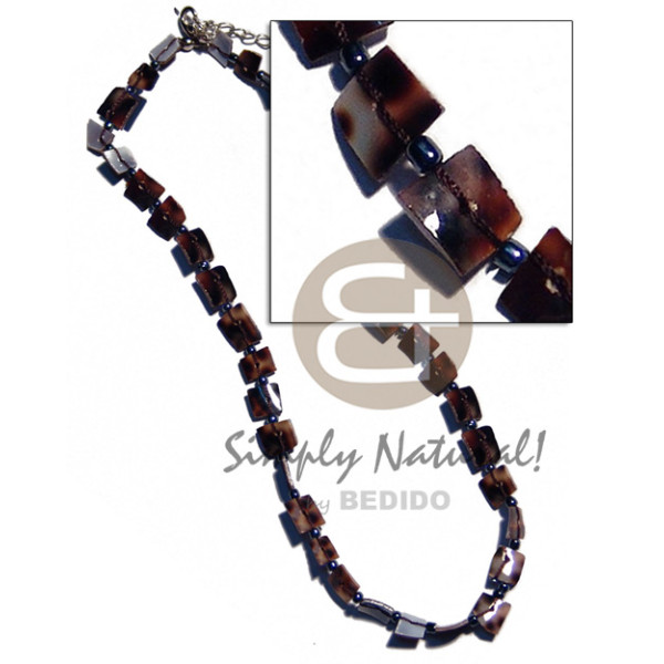 4-5mm coconut nat brown bamboo tube burning accent and cowrie fang pendant / 18in..