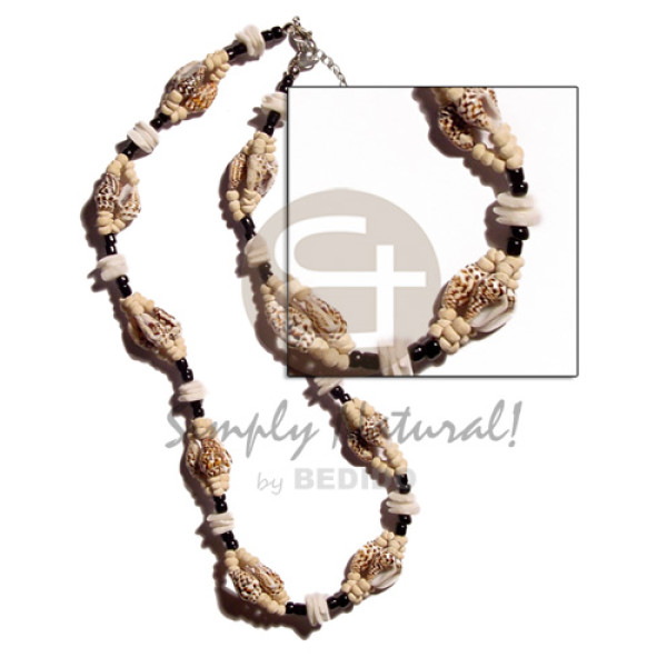 2-3mm bleached white coconut Pukalet 12mm/10mm/8mm round wood beads combination / 18in / barrel loc..