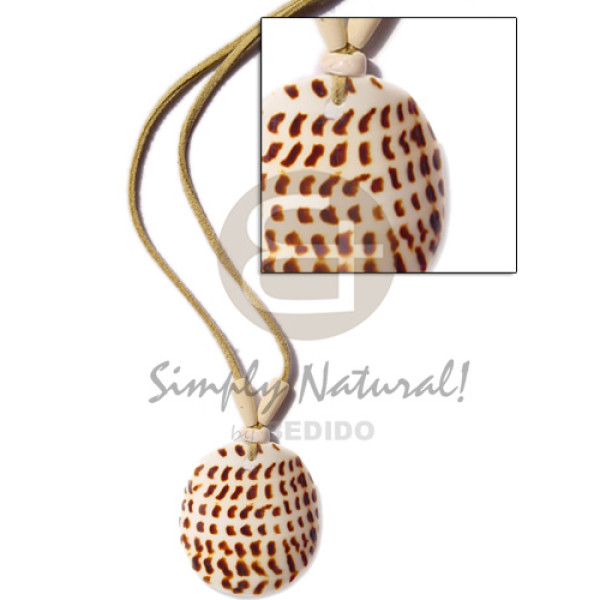 48mmx18mm triangular laminated cracking blacklip shell pendant backing on leather thong..