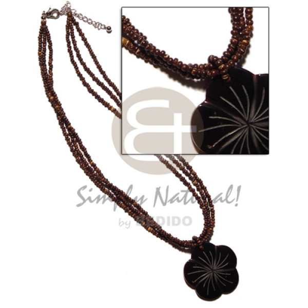 2-3mm black coconut heishi sq. cut black tab accent & 35mm flower blacklip pendant..