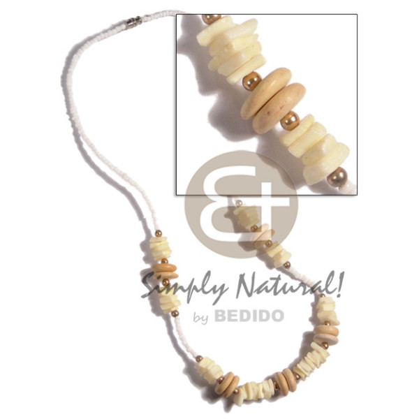 4-5mm white clam heishi buri beads and white mongo shells combination and 50mm kabibe ring (23mm in..