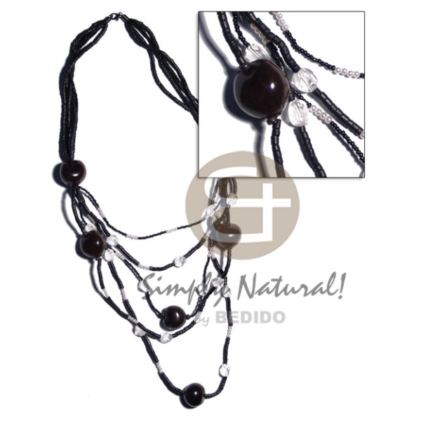 5 rows graduated multilayered black/white glass beads clear acrylic crystals and black kukui nut ..
