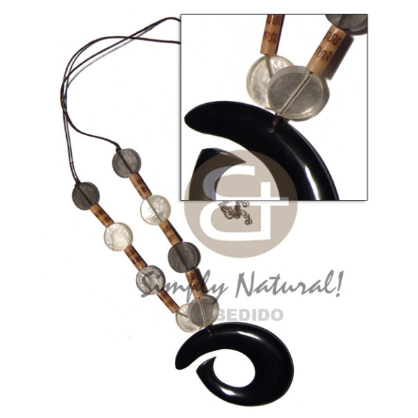 wax cord 20mm laminated silver/nat. white capiz clear resin backing and bamboo burning 80mm55mm b..