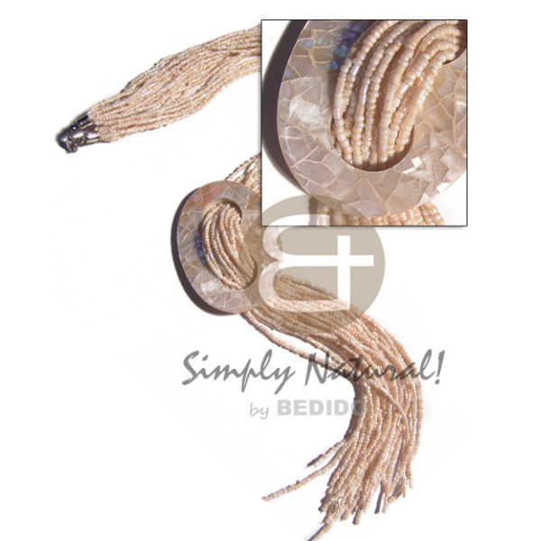 10 rows crème glass and cut beads scarf necklace matching 70mmx52mm nat. kabibe shell cracking bu..