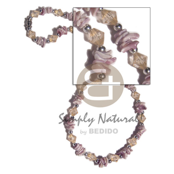 violet oyster chips and acrylic crystals combination / 16in/barrel lock..