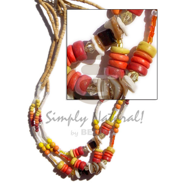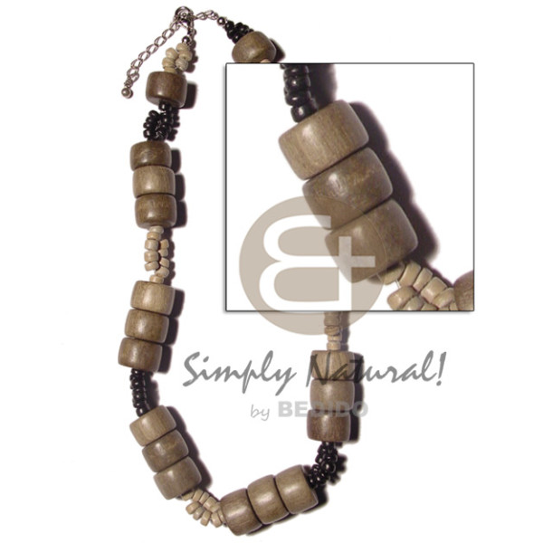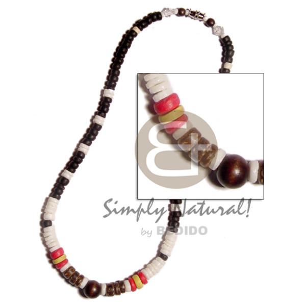 rust 2-3mm coconut heishi wire choker buri & wood beads accent dangling two 20mmx25mm rectangular ..