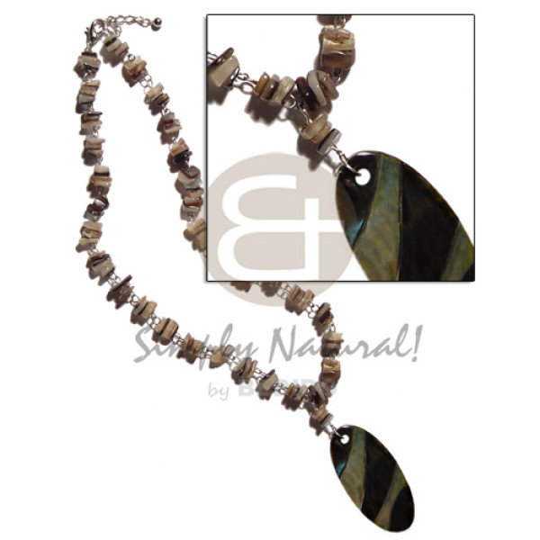 sq. cut brownlip in metal looping 45mmx25mm zebra blacklip skin pendant..