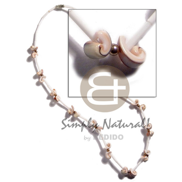 white mongo shell rings tiger white kukui nuts combination / 28in in matching adjustable ribbon t..