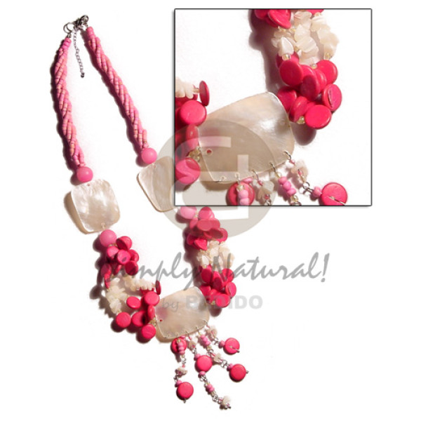 3 layers twisted pink 2-3mm coconut heishi buri beads, coconut sidedrill, shell chips , 3 pcs. 30mm..