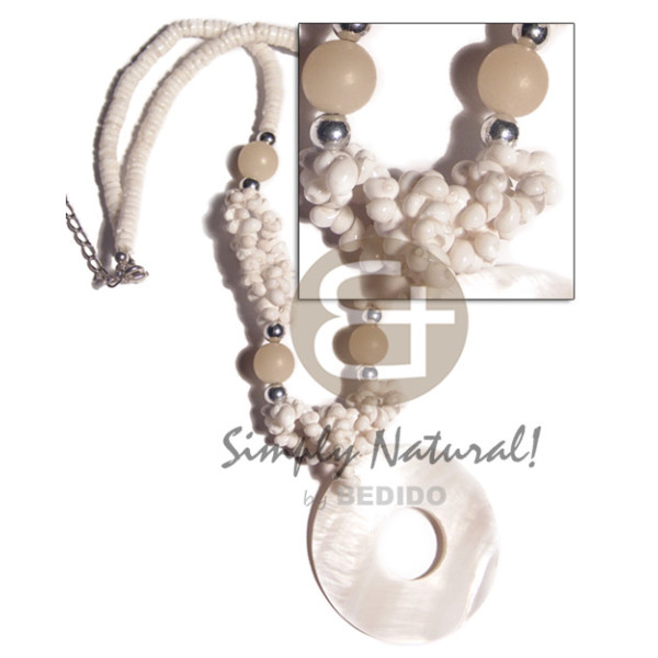 4-5mm white clam heishi buri beads and white mongo shells combination and 50mm kabibe ring (23mm in..