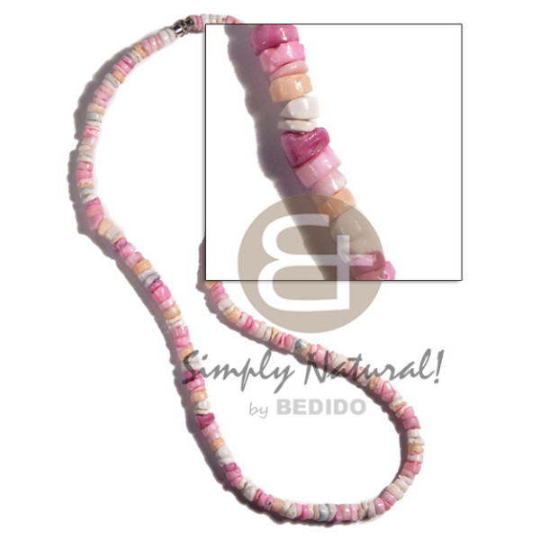 pink 3 layer wax cord buri seeds, shell & white rose beads combination..