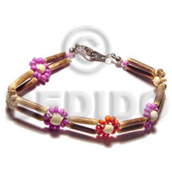 2 rows sig-id wood tube lavender/red 2-3mm coconut pukalet flower..
