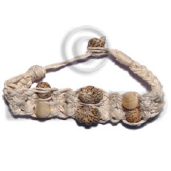 7-8mm coconut Pukalet and mahogany cylinder beads combination in macrame brown/beige wax cord..