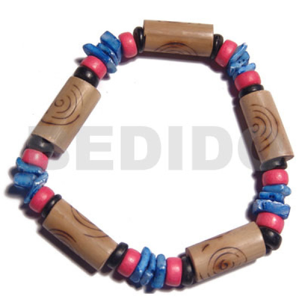 bamboo tubes burning blue white rose shell, reddish pink/black 7-8mm coconut Pukalet combination /..