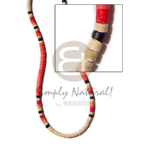 dangling wood beads and 4-5mm coconut Pukalet in gold tones..