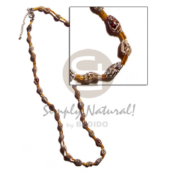 4-5mm coconut Pokalet. nat. brown handpainted 15mm robles round wood beads & white rose shell accen..