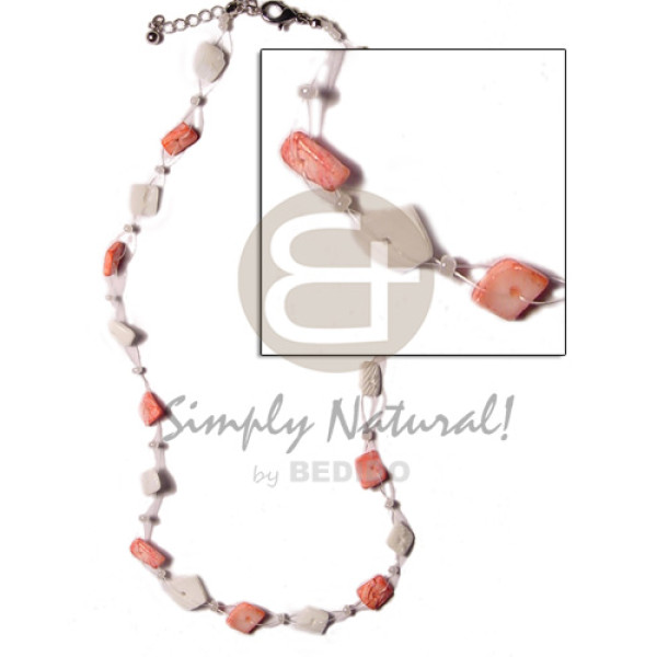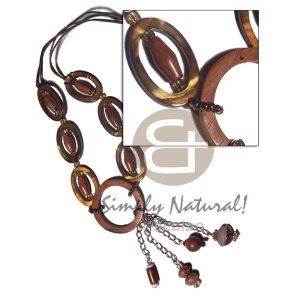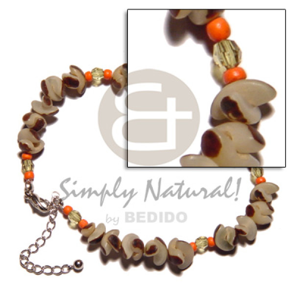 4-5mm nat. white coconut Pokalet. splashing/nat brown alt. wood tube & pearl beads combination..