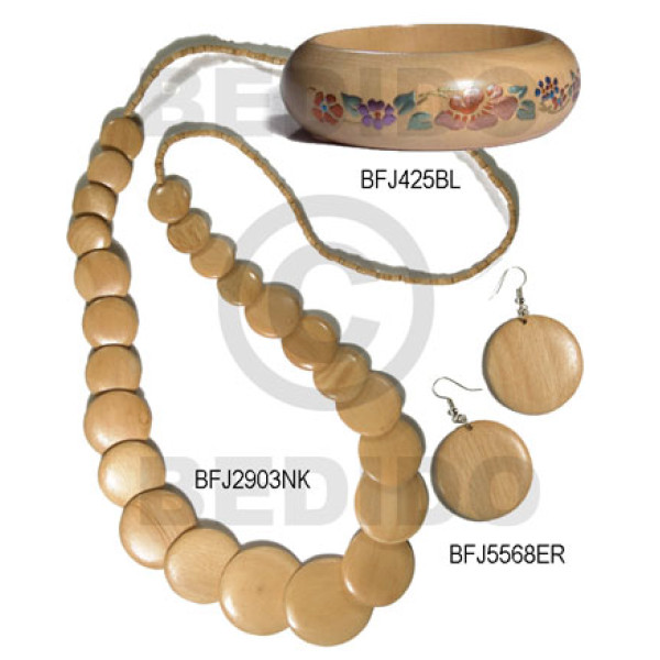 round woods beads brown kukui nuts, buri tiger seed, two 35mm palmwood circles and dangling gradua..