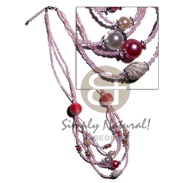 5 rows graduated multilayered light pink beads wrapped and buffed bleached wood beads/pearl accent..