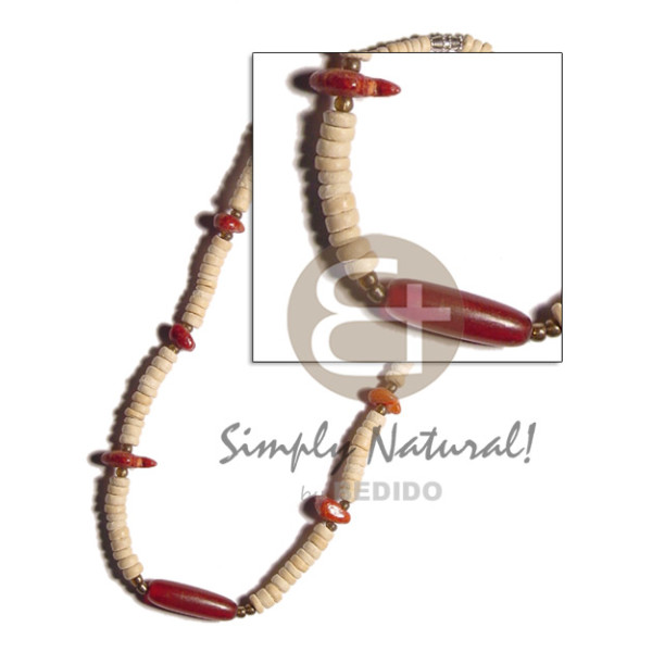 4-5mm coconut Pukalet nat. 10mmx17mm twisted bayong wood beads & matte gold resin beads..