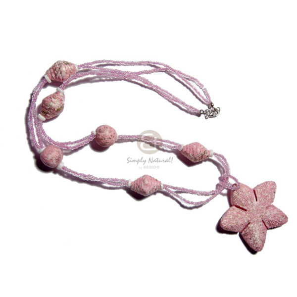 45mm flower coconut pendant 25mm hammershell flower skin combination and wood beads on wax cord n..