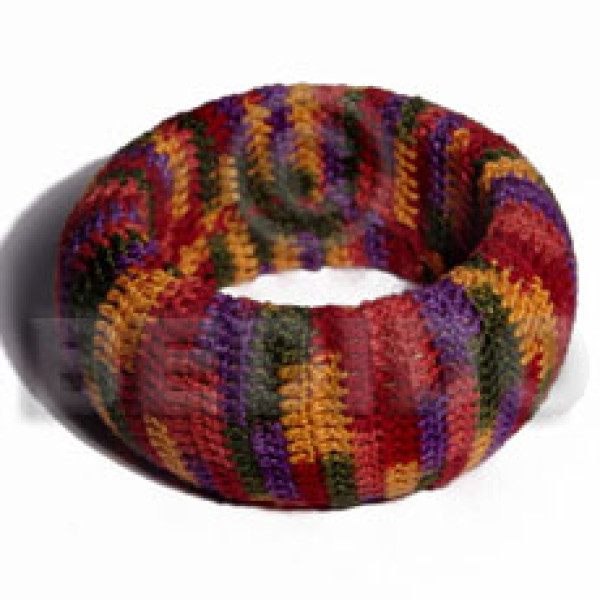 nat. wood bangle in multicolored crochet ht=38mm thickness=10mm inner diameter=65mm..