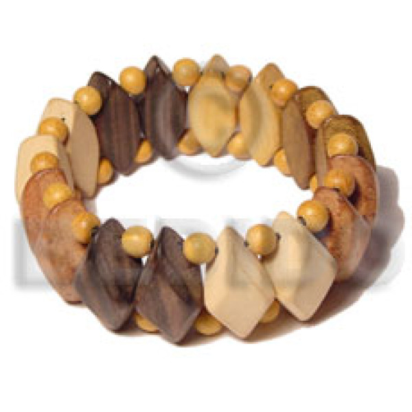 5 wood type diamond elastic bangle - camagong, nangka,robles,bayong & natural wood clear coat finis..