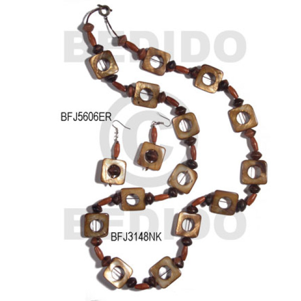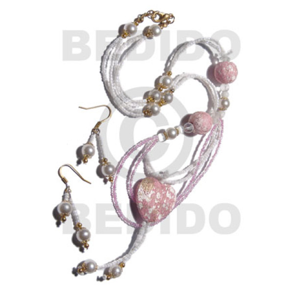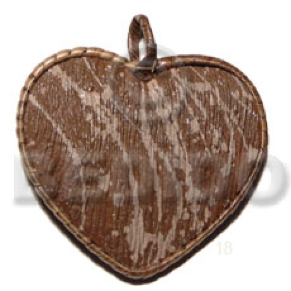 55mm textured marble brown heart nat. wood pendant nito side trimmings / holder..