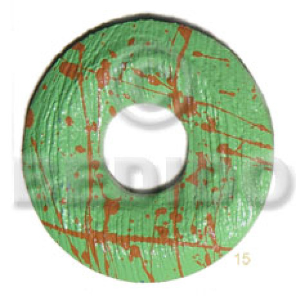 textured marbled light green round ring 50mm nat. wood pendant 20mm center hole..